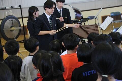 今回も小学校の全校生徒を前に3曲演奏したほか、少しでも楽器に興味を持ってもらえるように、各パートに別れて間近で楽器の音を聞いてもらう企画も行い、楽しい時間を過ごすことができました。