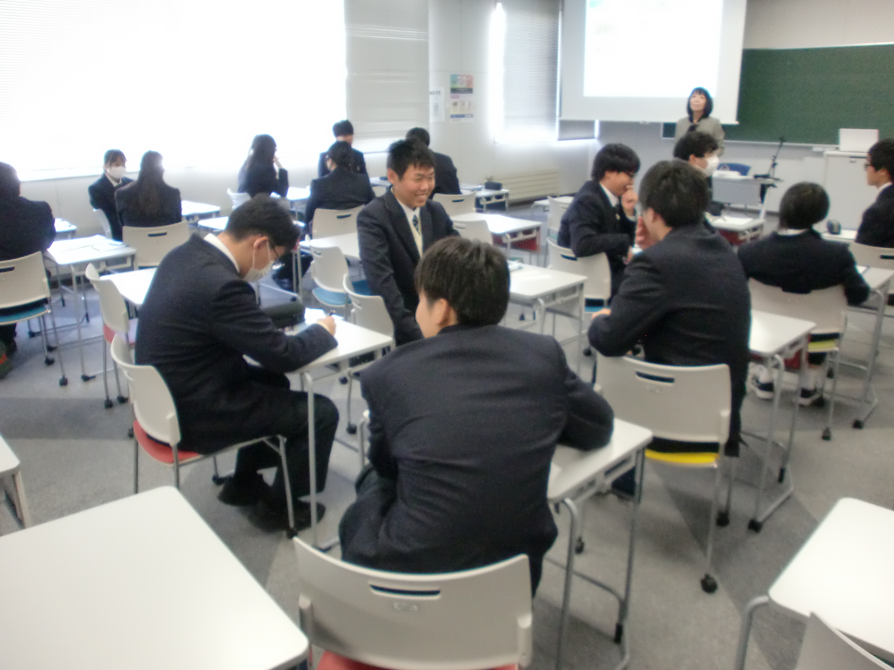 その後、グループでまとめ作業を行い、各学校の特色や魅力についての発表を行いました。普段、あまり大学や専門学校などを見学することができないため、自分自身の進路について考える貴重な機会となりました。