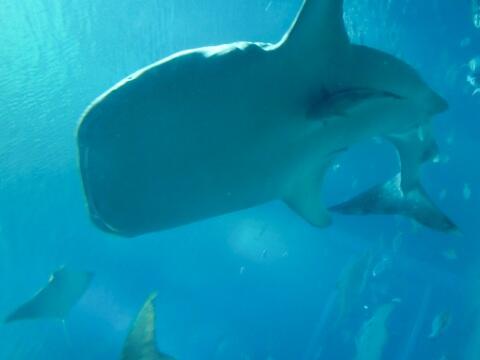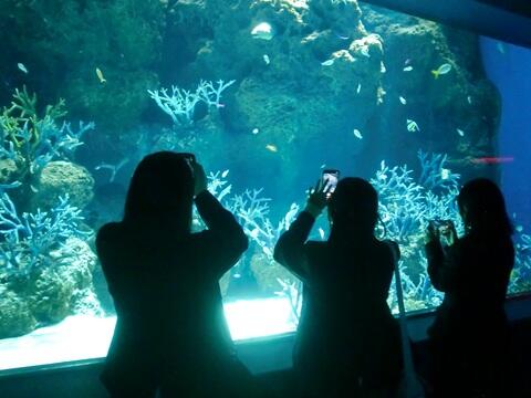 巨大な水槽でジンベイザメやエイなど悠々と泳いでいる姿を目の当たりにし、思わずカメラを向けている生徒が沢山いました。