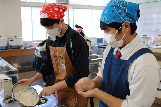 味はもちろん、見た目の華やかさや原価計算まで考慮。納得のいく一品にするため、何度も調理実習を繰り返し、試作と改良を重ねてきました。報告会では開発に込めた思いや、商品を通じてどのような魅力を伝えたかったのか、堂々と報告することができました。